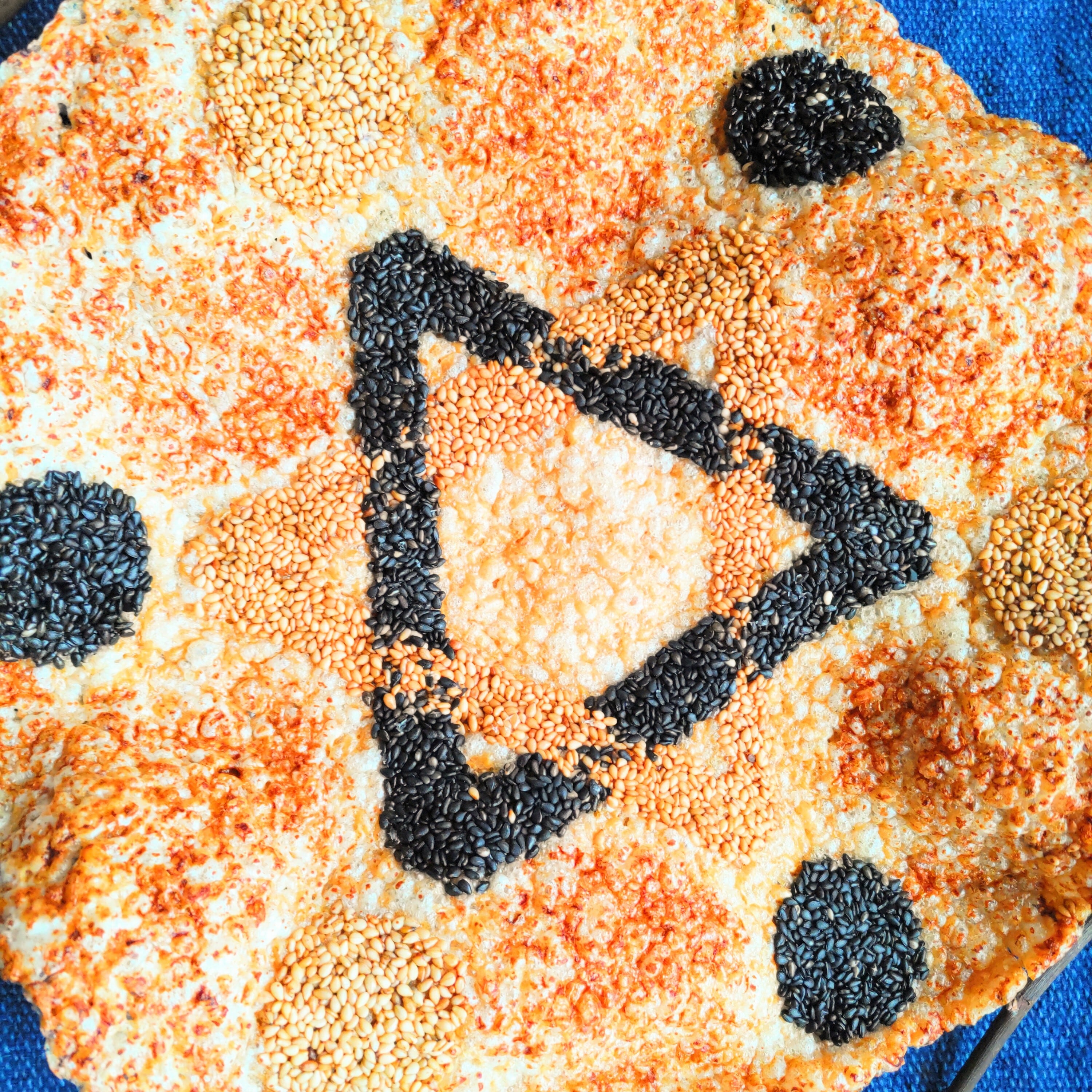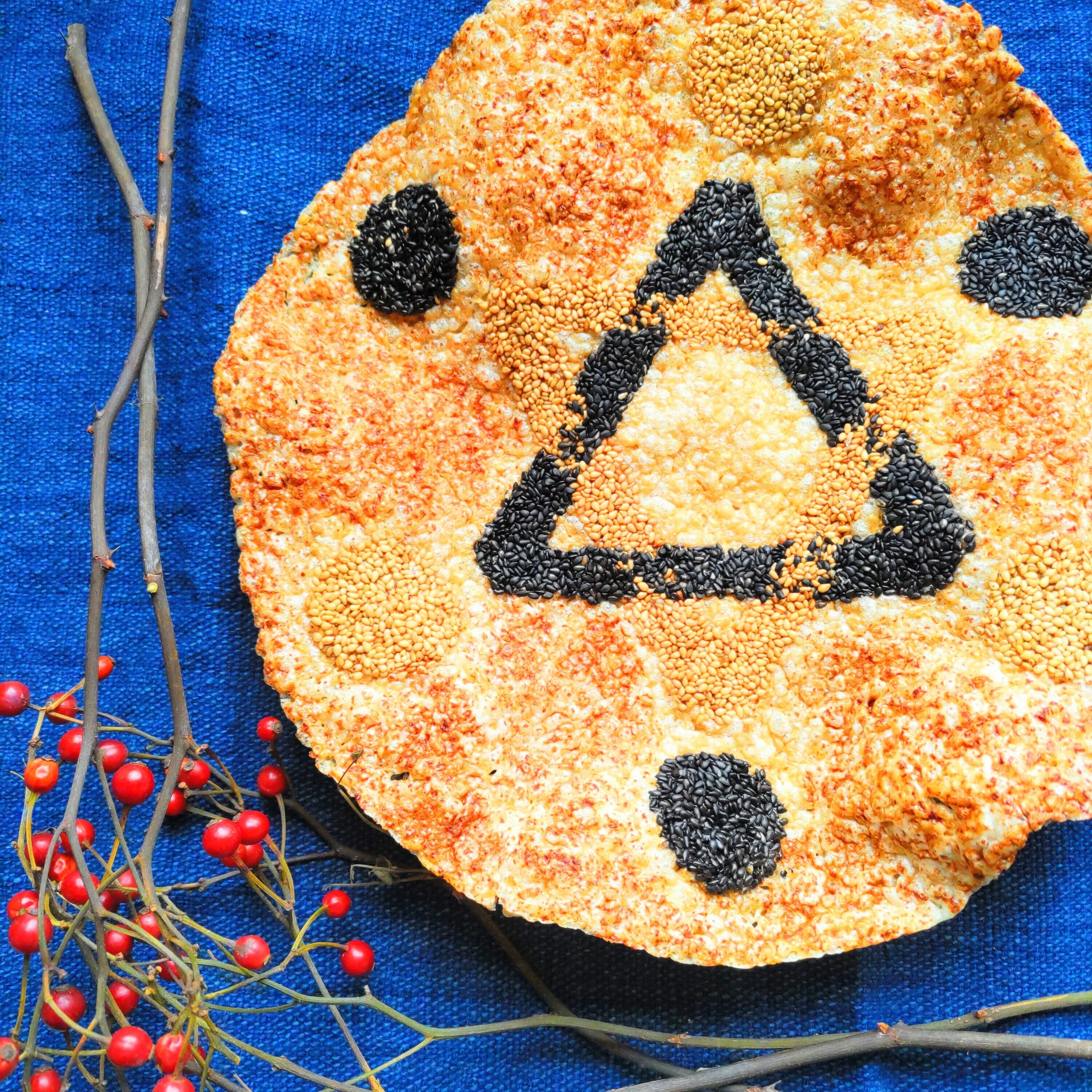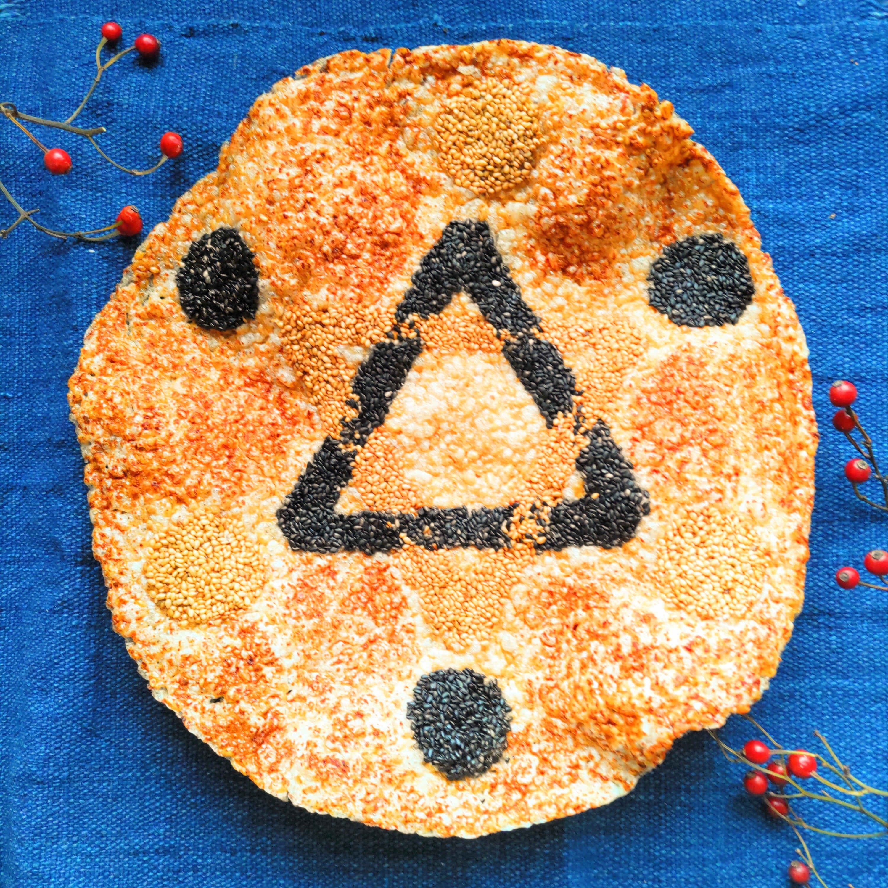 香り高い古式製法三年仕込み醤油と有機白黒ごまが美味しく、見た目も嬉しい、魂に語りかけるお菓子です。