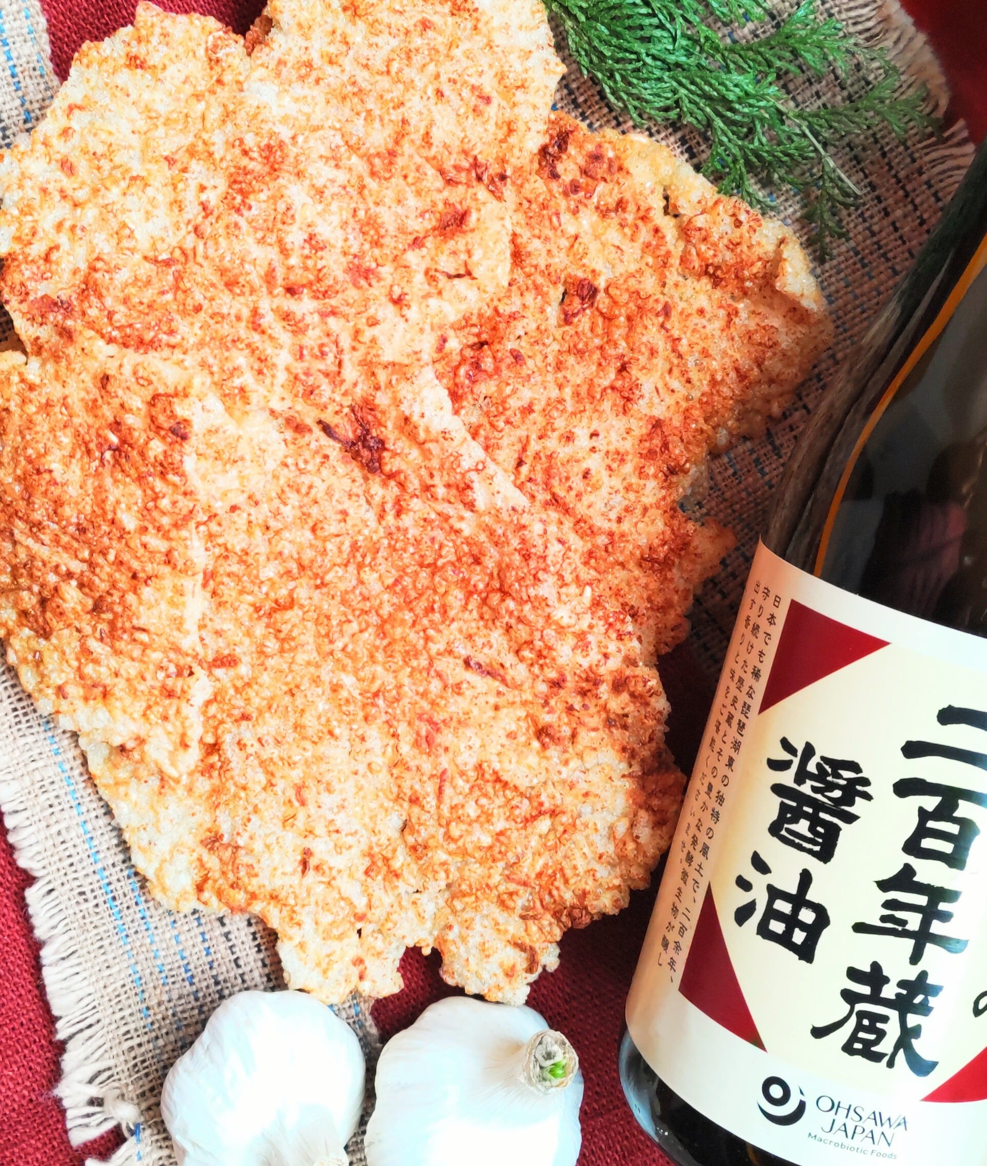 玄米せん・にんにく醤油です!